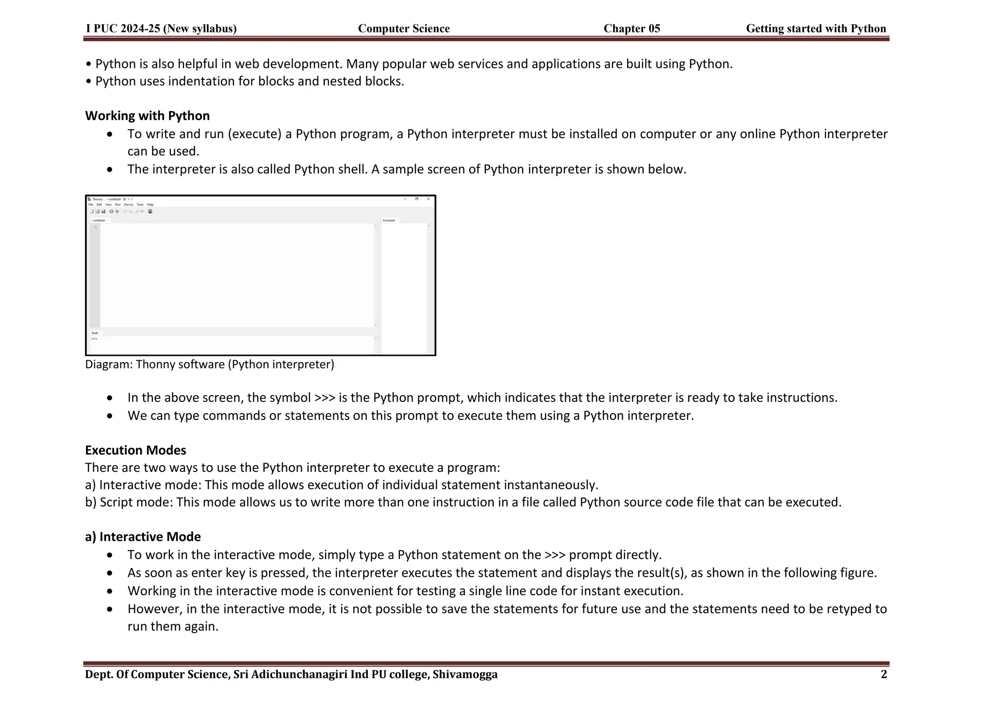 Based on this image's title: “5 getting started with Python 1st puc syllubus | PDF”