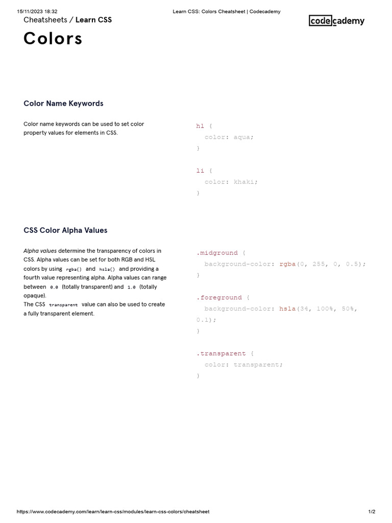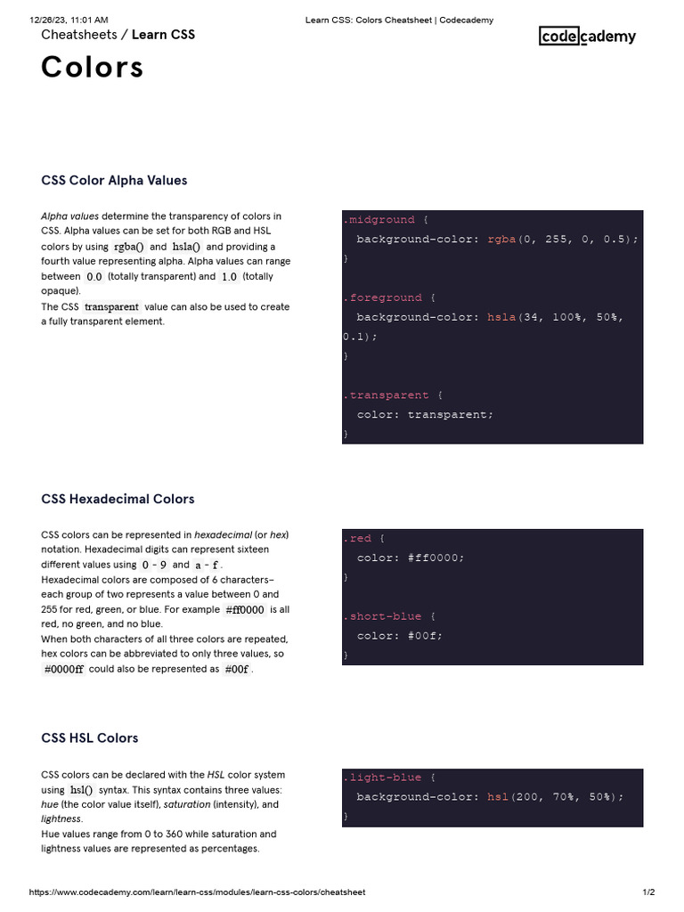 Learn CSS - Colors Cheatsheet - Codecademy | PDF | Graphics | Computer ...