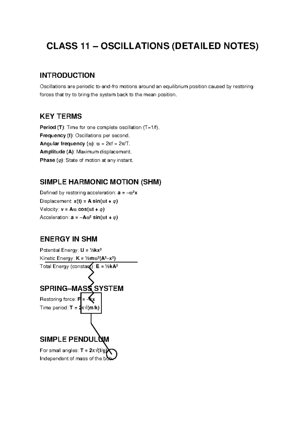 CLASS 11 OSCILLATIONS: DETAILED NOTES & KEY CONCEPTS - Studocu