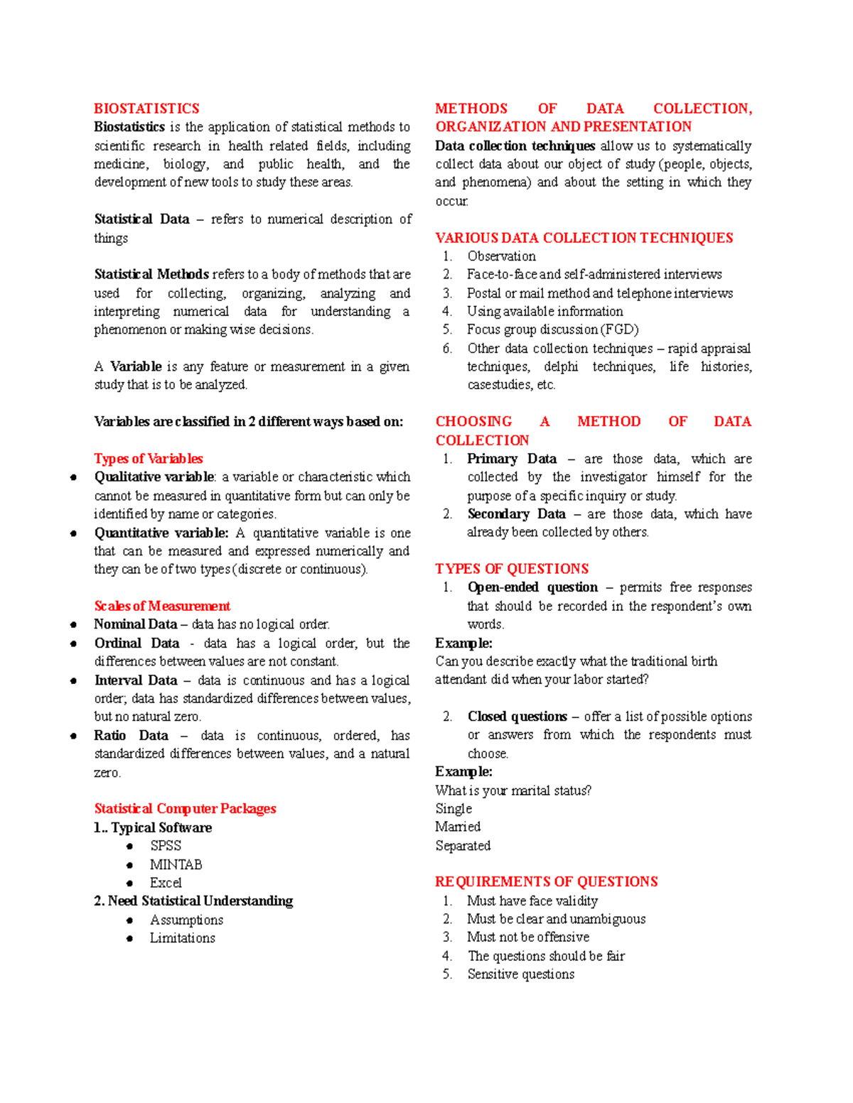 Biostatistics Notes: Key Concepts and Data Analysis Techniques - Studocu