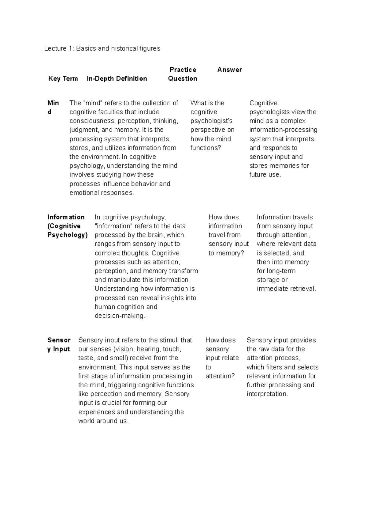 Cognitive Psychology Lecture 1: Key Terms and Concepts (Course Code ...