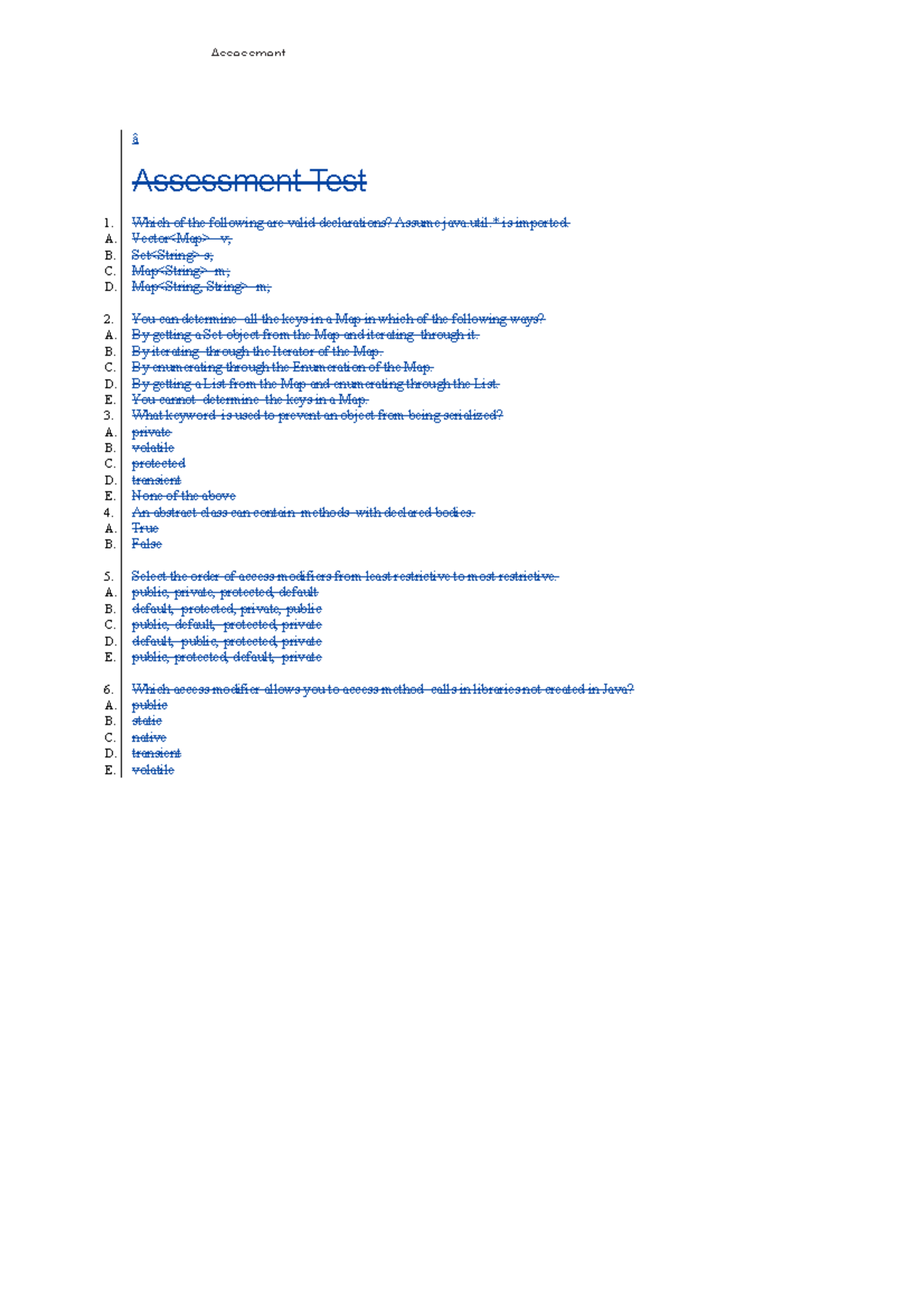 KEY JAVA Assessment Test - 123: Valid Declarations & Concepts - Studocu