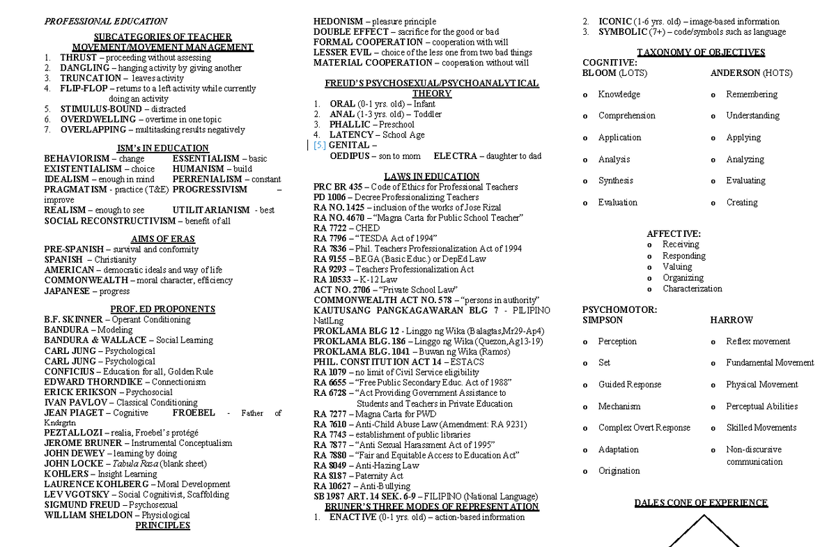 Gen Ed Reviewer Notes: Key Concepts and Theories in Education - Studocu