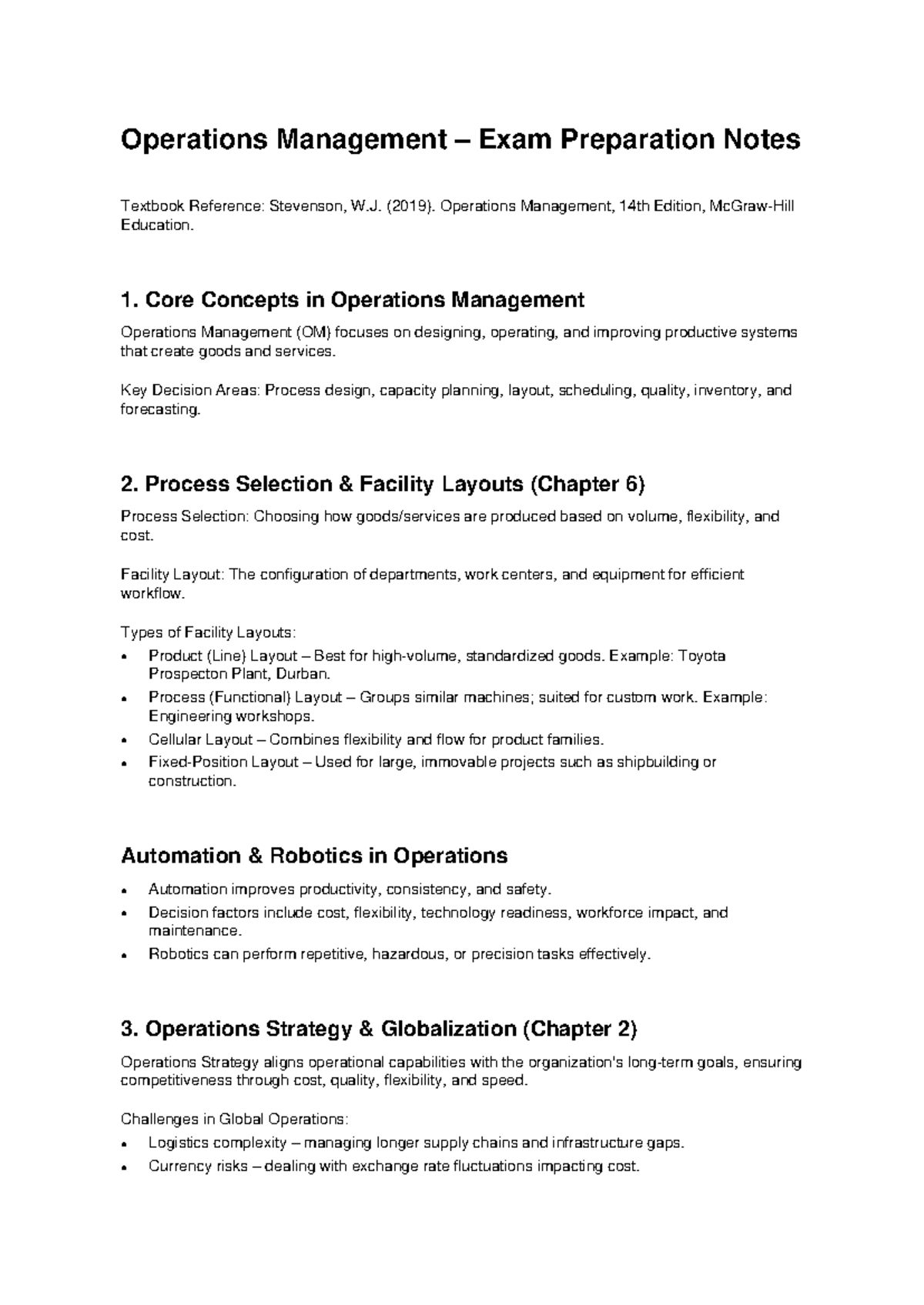 OM 14th Ed. Exam Prep Notes: Key Concepts & Strategies - Studocu