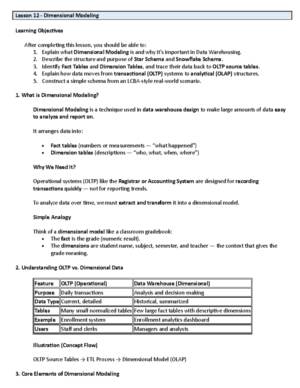 Lesson 12 - Dimensional Modeling Overview and Key Concepts - Studocu