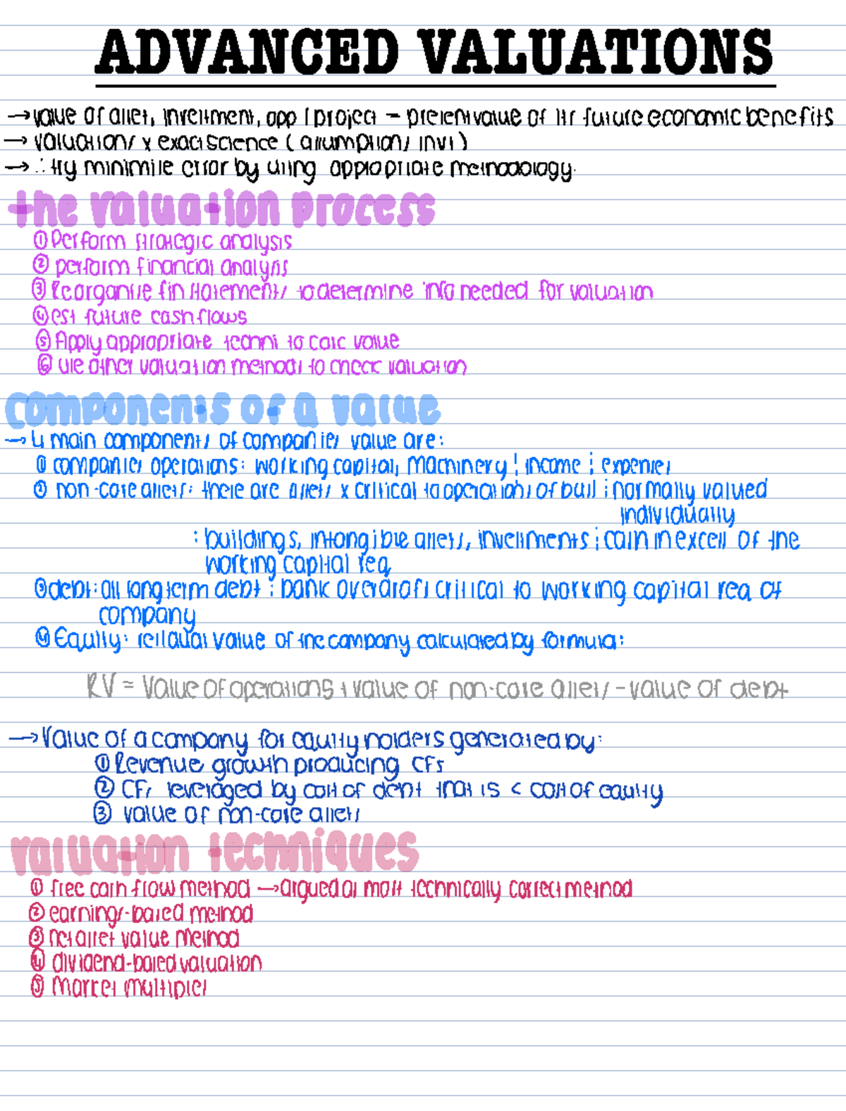 Advanced Valuations Notes: Key Concepts and Methodologies - Studocu