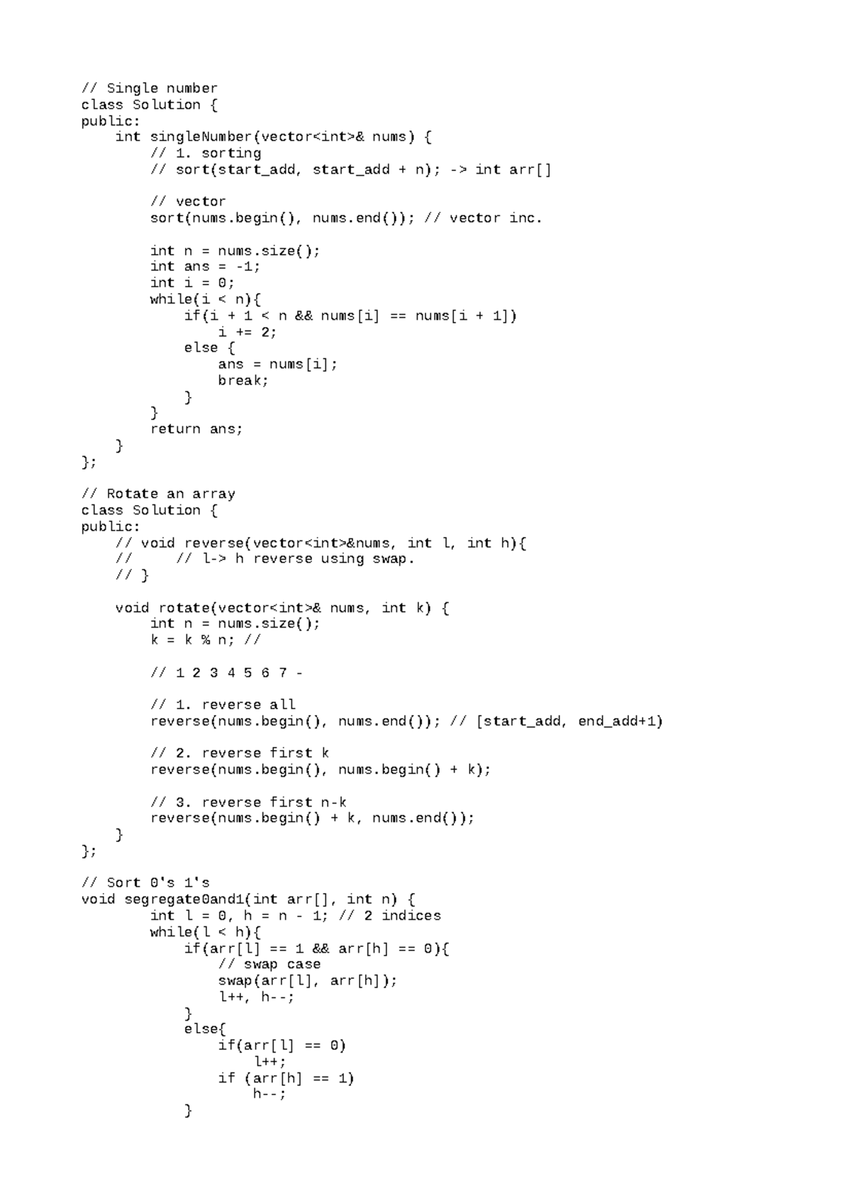 Doubt Class [Codes] - Single Number & Array Rotation Concepts - Studocu