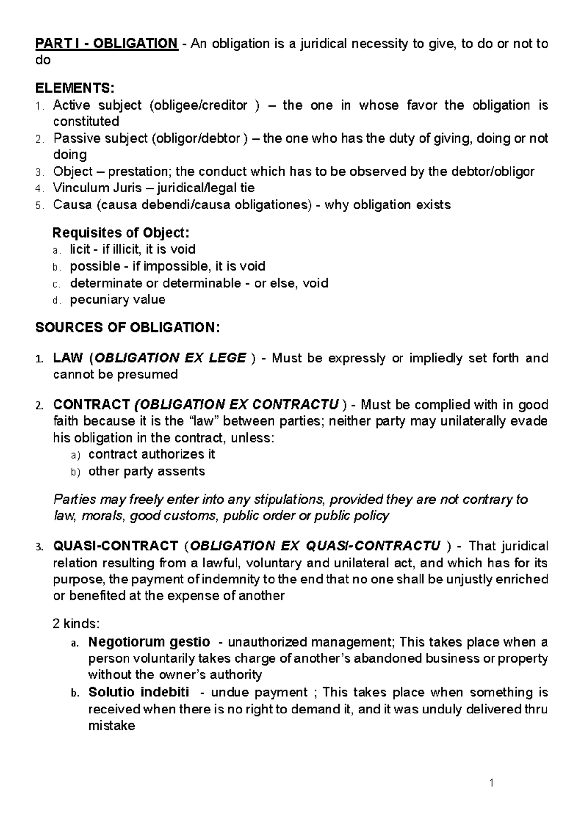 Oblicon Notes: Key Concepts and Sources of Obligation Explained - Studocu