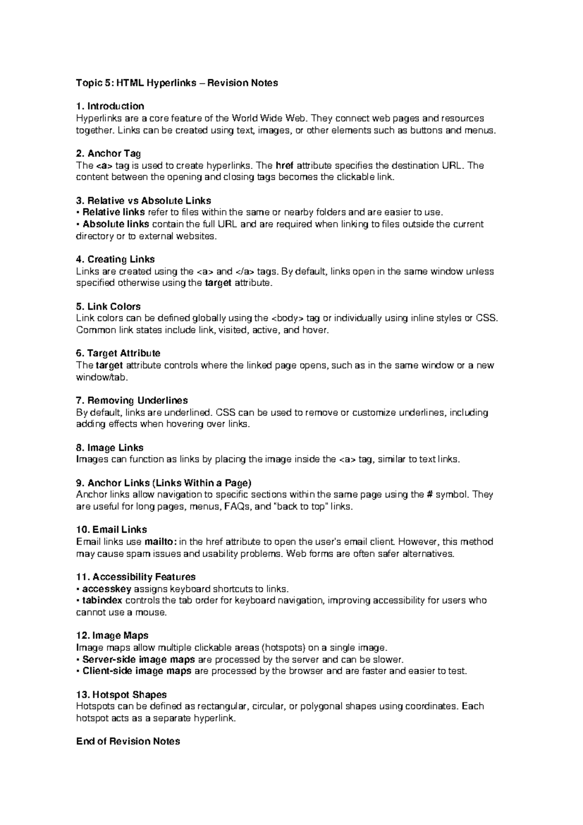 HTML Hyperlinks Revision Notes: Key Concepts and Techniques - Studocu