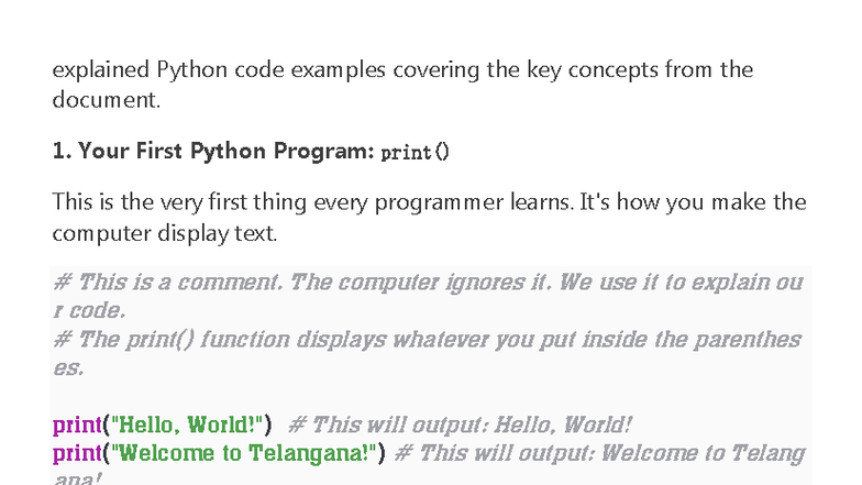 Python Codes - Key Concepts and Examples for Important Questions - Studocu