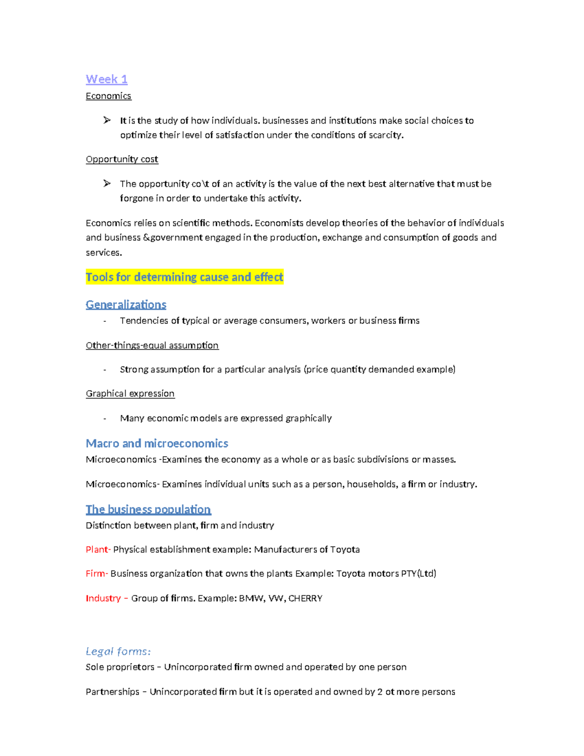 Week 1-4 Economics Notes: Key Concepts and Theories - Studocu
