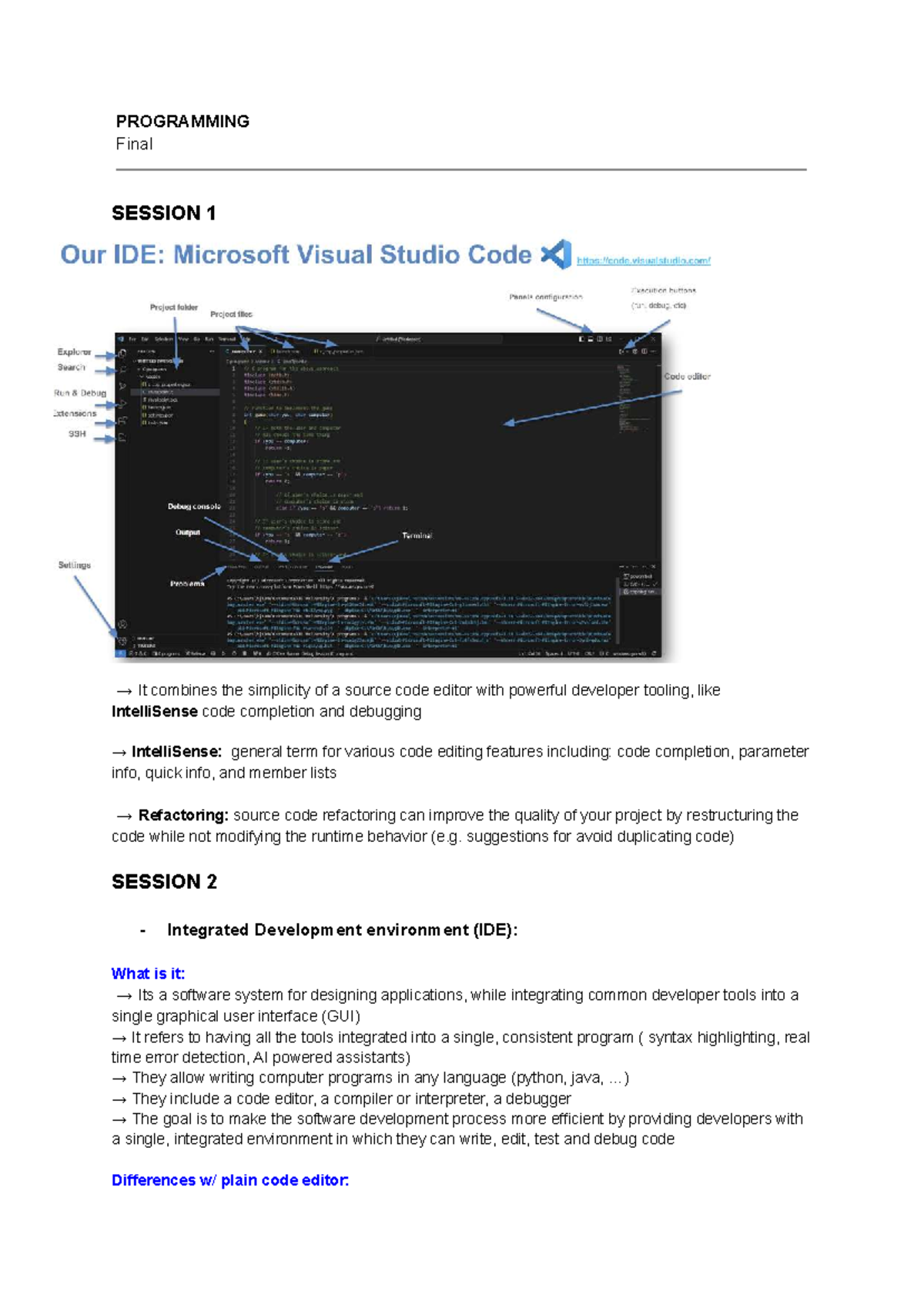 Programming Final Exam: Sessions 1-6 Overview and Key Concepts - Studocu