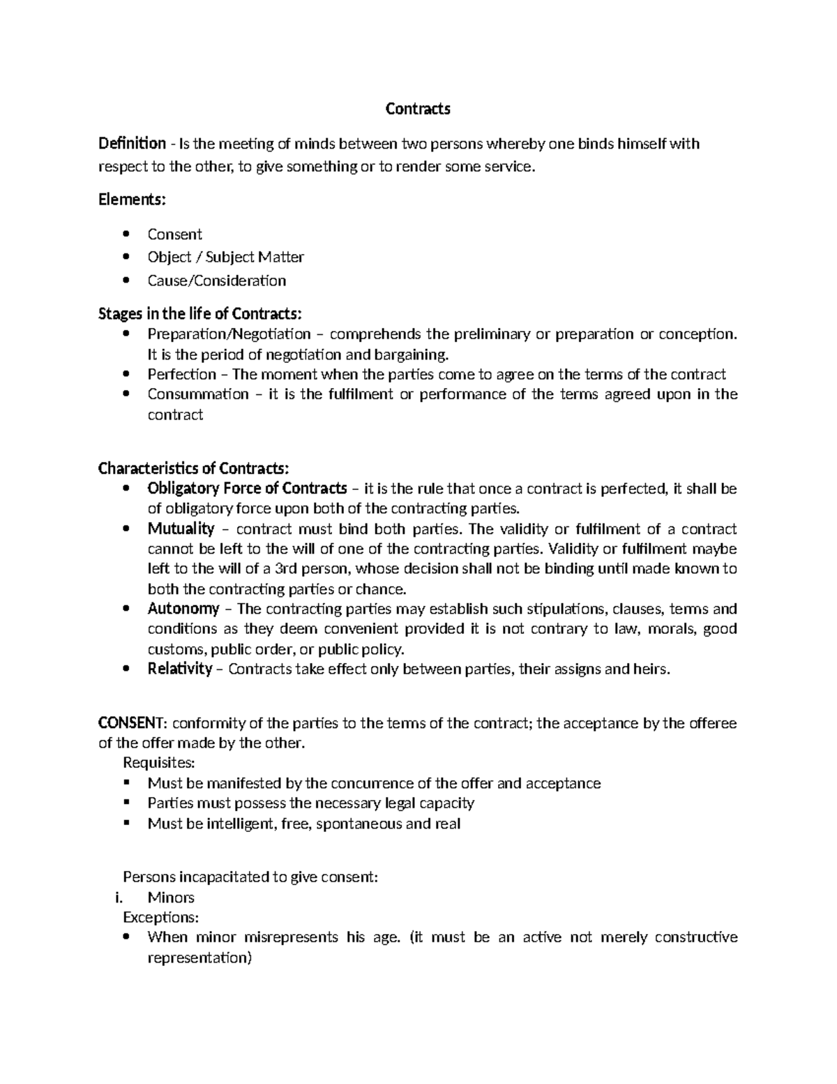 Contracts Final Exam Notes: Key Concepts and Definitions - Studocu