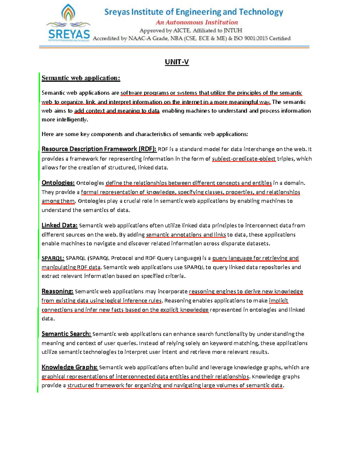 Semantic Web Unit-V Notes: Key Concepts and Applications - Studocu