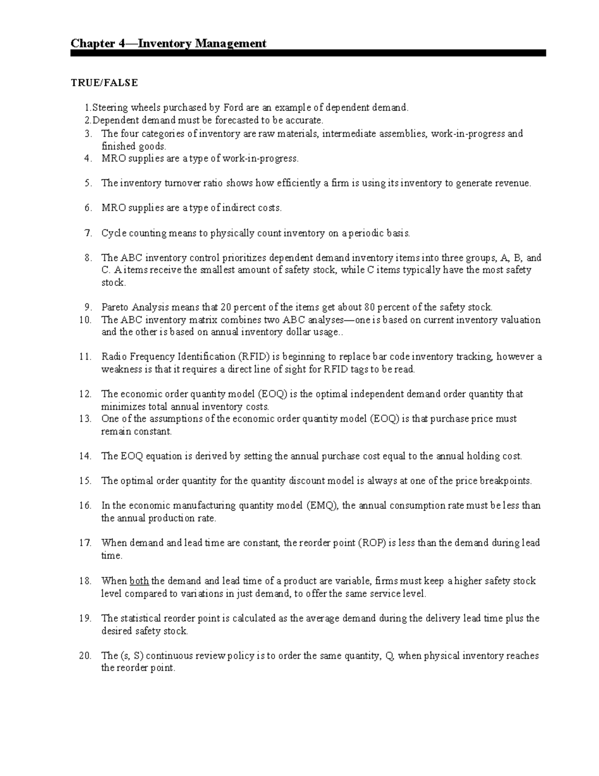 Inventory Chapter Notes: Key Concepts and EOQ Analysis - Studocu