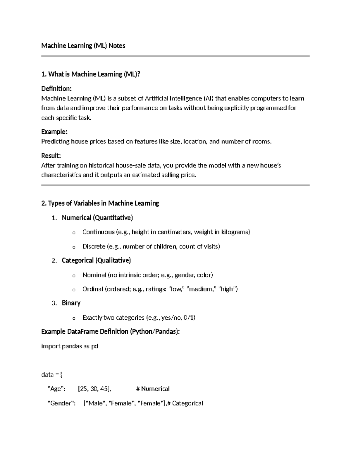 Machine Learning (ML) Notes: Key Concepts and Techniques - Studocu