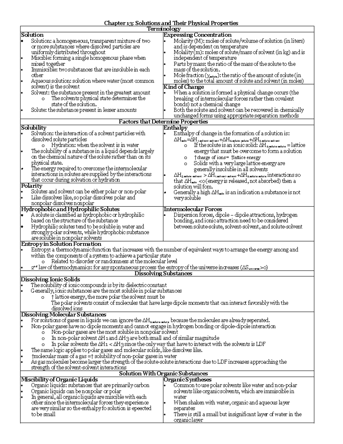 Chapter 13: Solutions Notes - Key Concepts and Terminology - Studocu