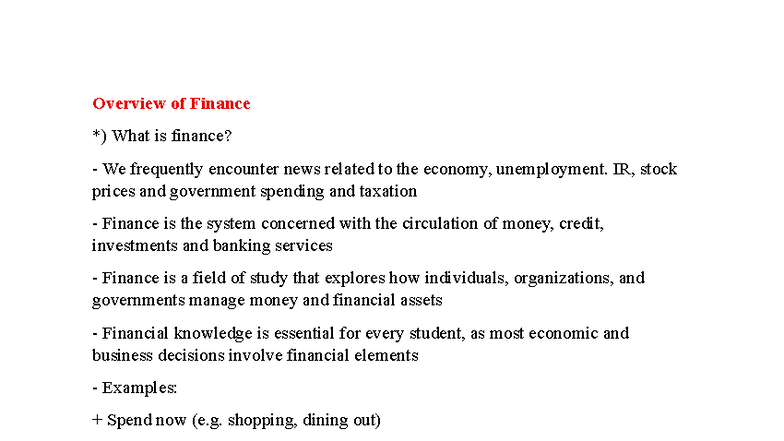 Finance Overview: Key Concepts and Principles (Course Code: FIN101 ...