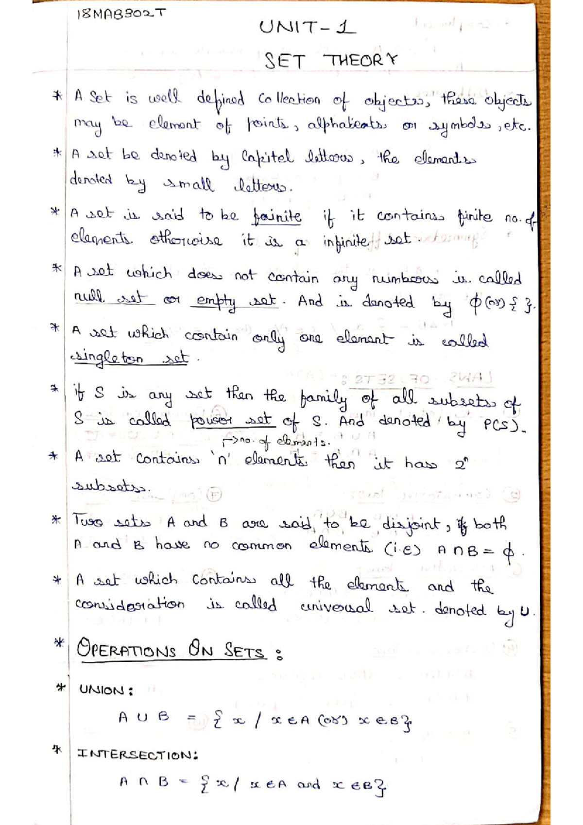18MAB302T Set Theory: Key Concepts and Operations Notes - Studocu