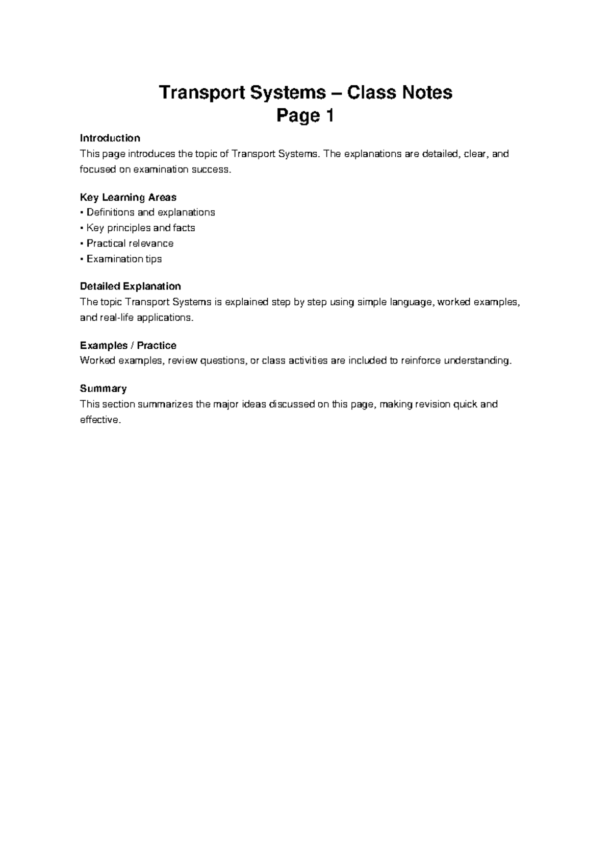 Transport Systems Class Notes: Key Concepts & Exam Tips - Studocu