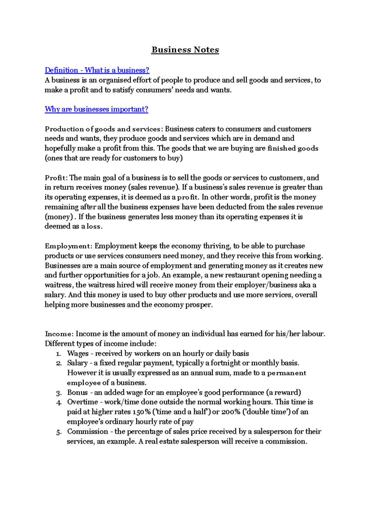 Business Notes: Understanding Key Concepts and Classifications - Studocu