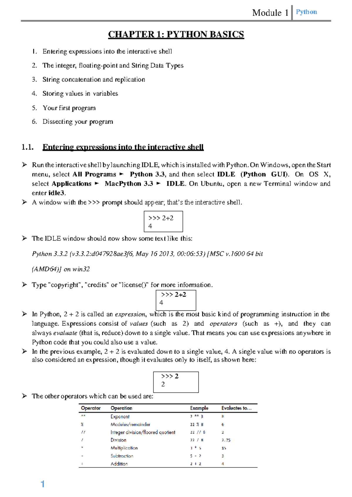 Python Notes Module 1 - CHAPTER 1: PYTHON BASICS Entering expressions ...