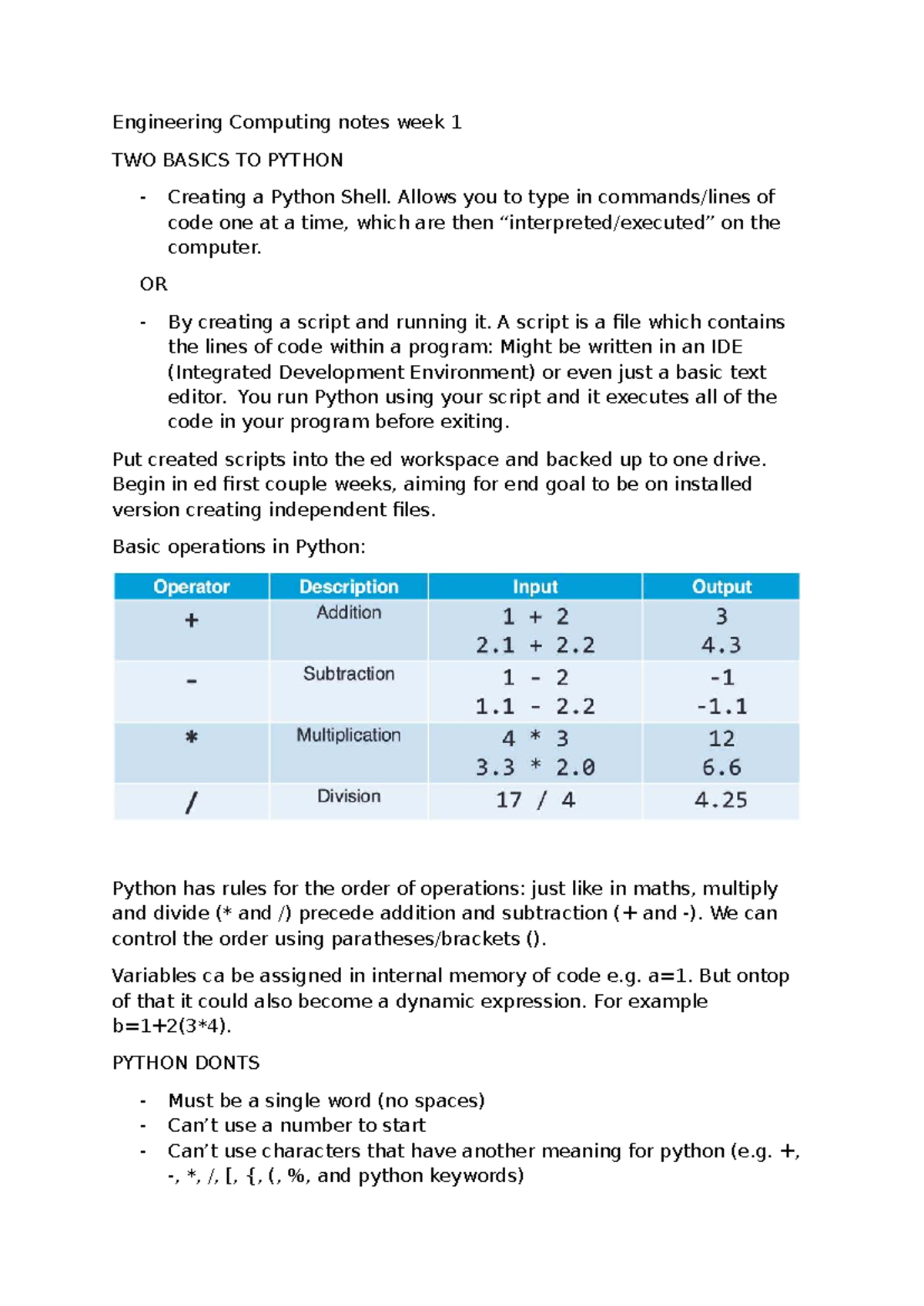 ENGG 101: Week 1 Python Basics - Shells, Scripts, and Operations - Studocu