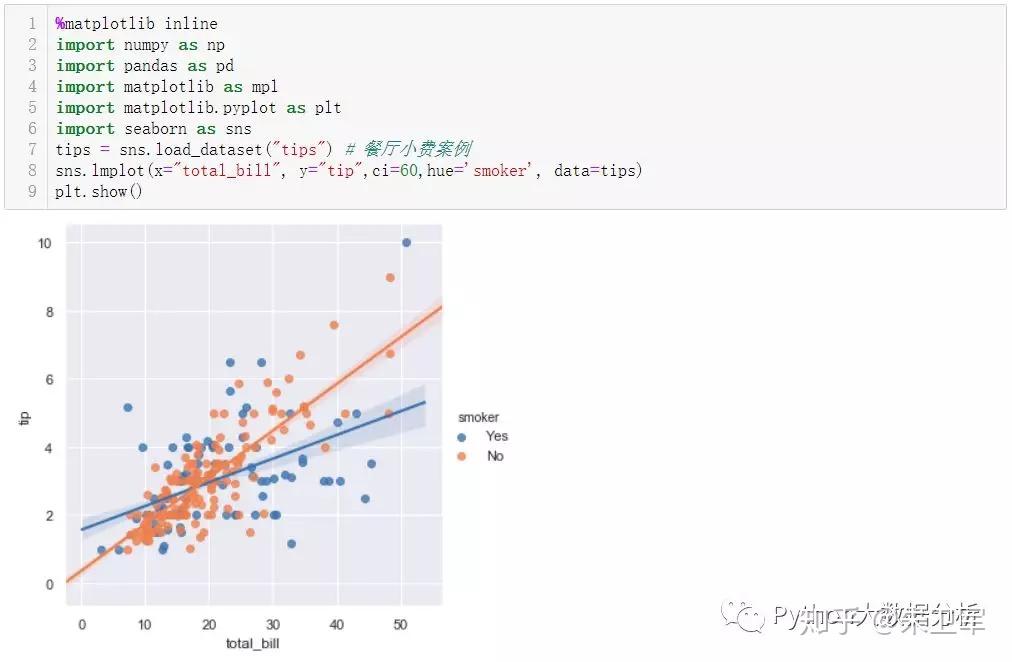 【Python-可视化】高级画图包 seaborn 官方案例: lmplot() + scatterplot() - 知乎