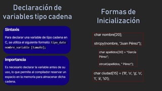 Declaración e inicialización de variables de tipo cadena | PPT