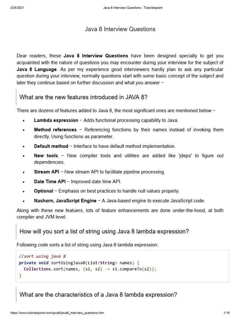Java 8 Interview Questions - Tutorialspoint | PDF | Anonymous Function ...