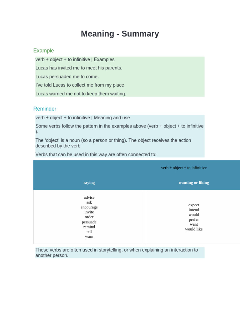Verb + object + to-infinitive – English Grammar Chart | English grammar ...