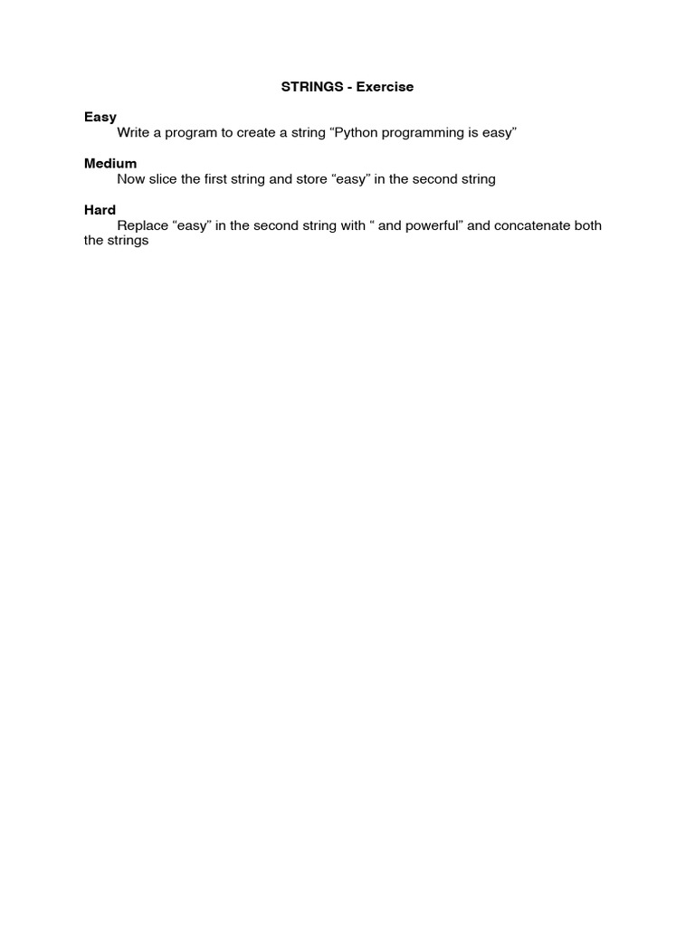 String Exercises Python at Nick Mendoza blog