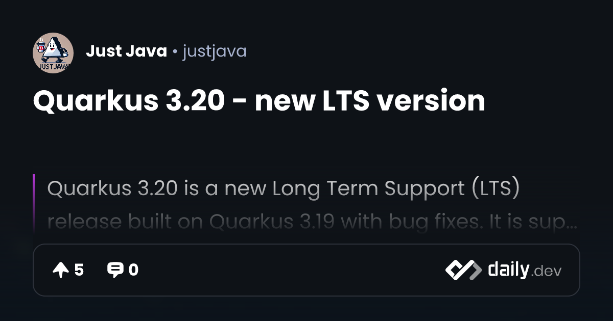 Quarkus 3.20 - new LTS version | daily.dev