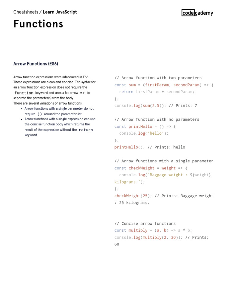 Learn JavaScript - Functions Cheatsheet - Codecademy | PDF | Anonymous ...
