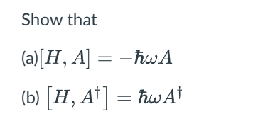 Solved Show that (a) [H,A]=−ℏωA (b) [H,A†]=ℏωA† | Chegg.com