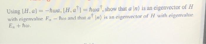 Solved Using [H,a]=−ℏωa,[H,a†]=ℏωa†, show that a∣n is an | Chegg.com