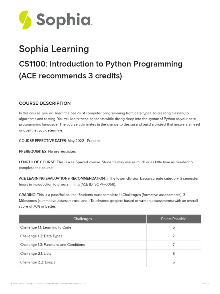 Sophia Introduction To Python Programming Syllabus | PDF | Computer ...
