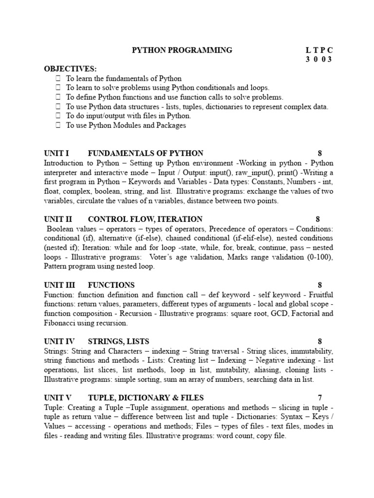 GE3151 Python Programming Syllabus | PDF | Computer Programming ...