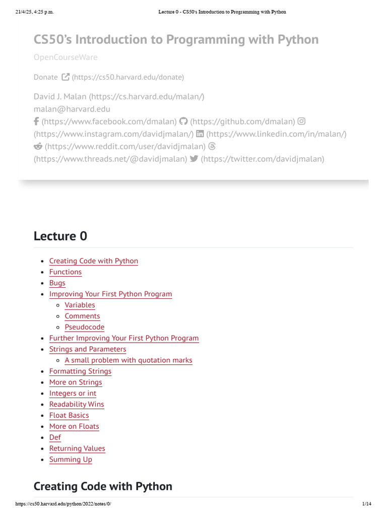 Based on this image's title: “CS50 Python Programming Syllabus | PDF | Parameter (Computer ...”