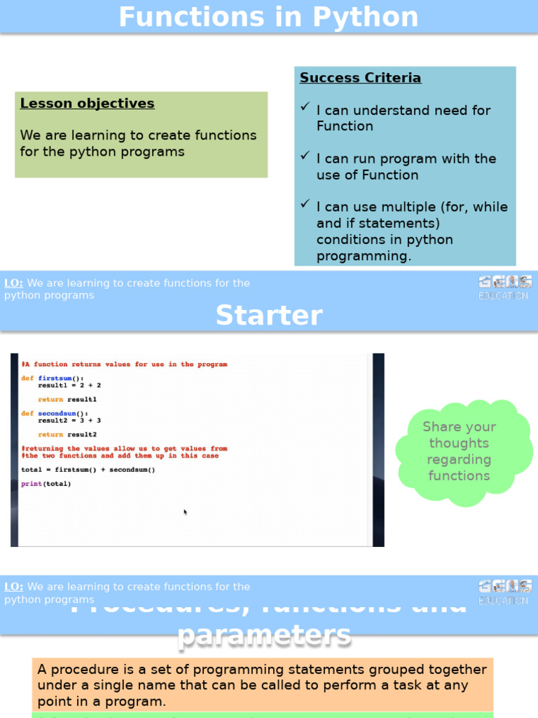 PYTHON FUNCTIONS AND PROCEDURES TEACHING PACK | Teaching Resources