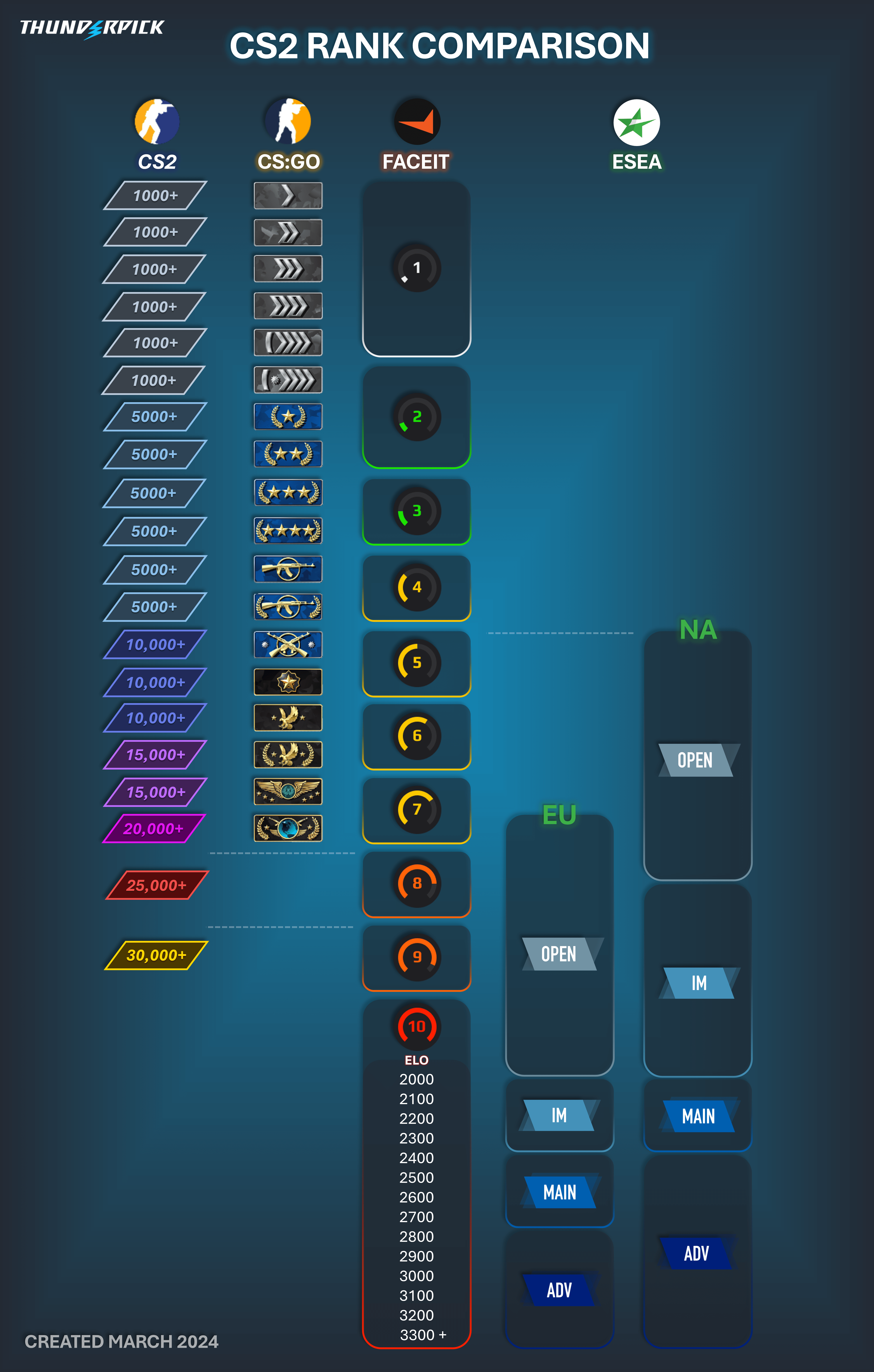 Comparing CS:GO ranks to new CS2 Premier CS Rating. How many elo points ...