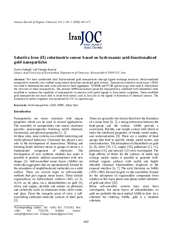 (PDF) Gold nanoparticles as colorimetric sensor for iron ions detection ...