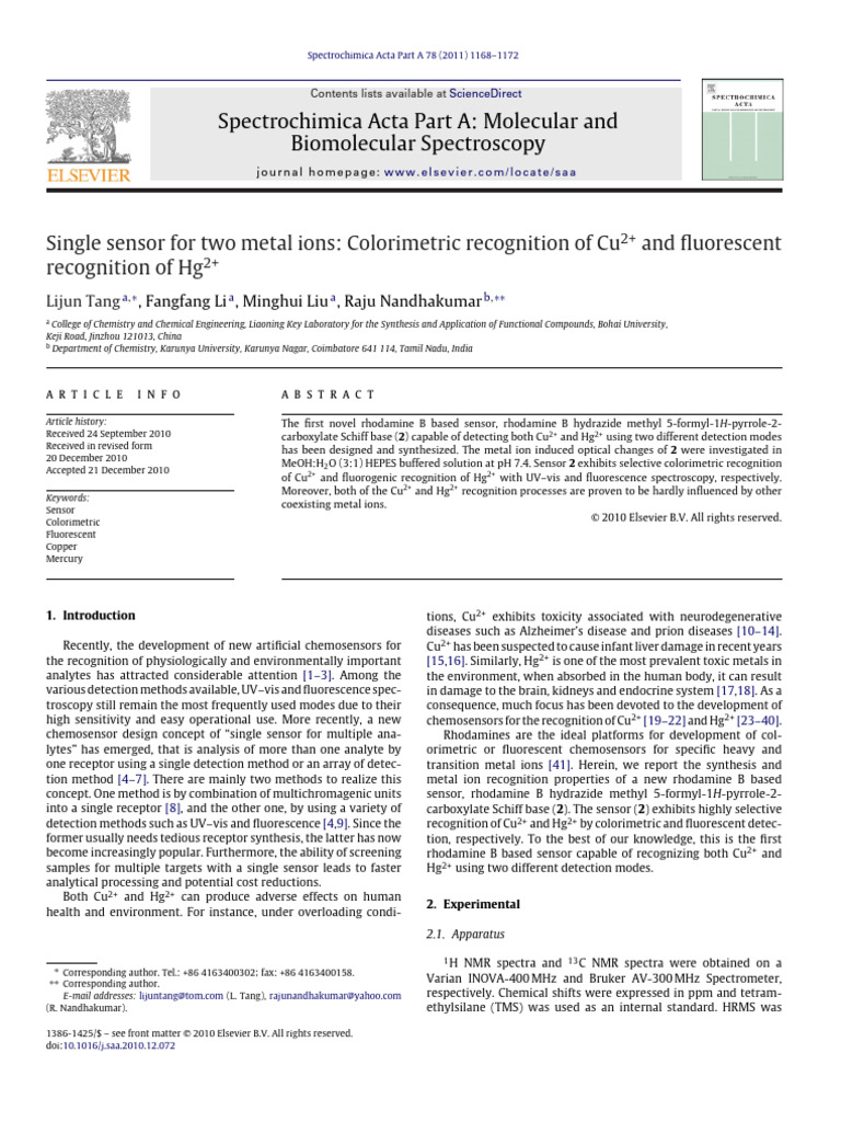 Single Sensor For Two Metal Ions Colorim | PDF | Absorption ...
