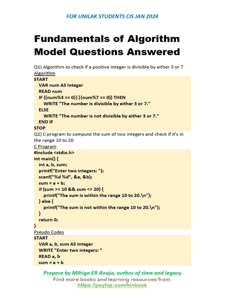 Fundamentals of Algorithm Model Questions Answered | PDF | Fahrenheit ...