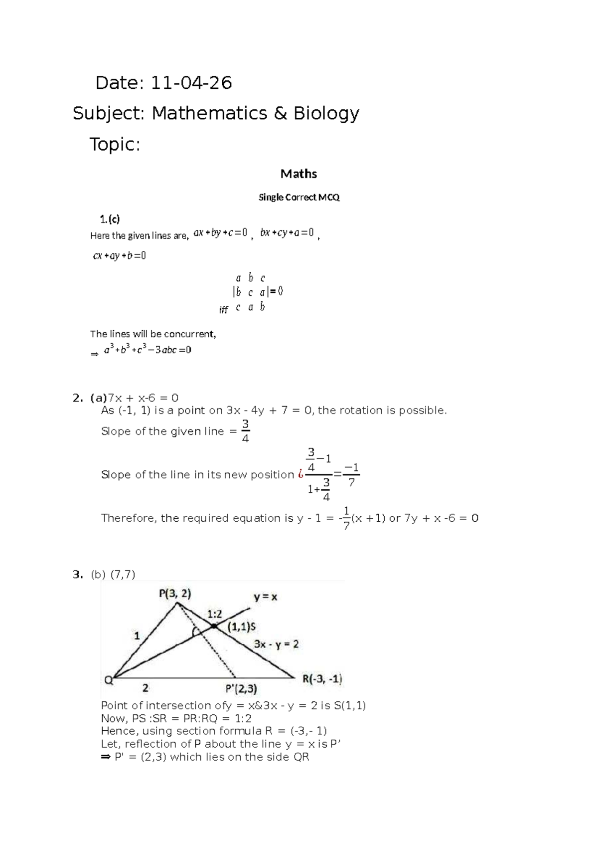 PACE 12th K-CET Maths & Biology MCQ Solutions (11-04-26) - Studocu