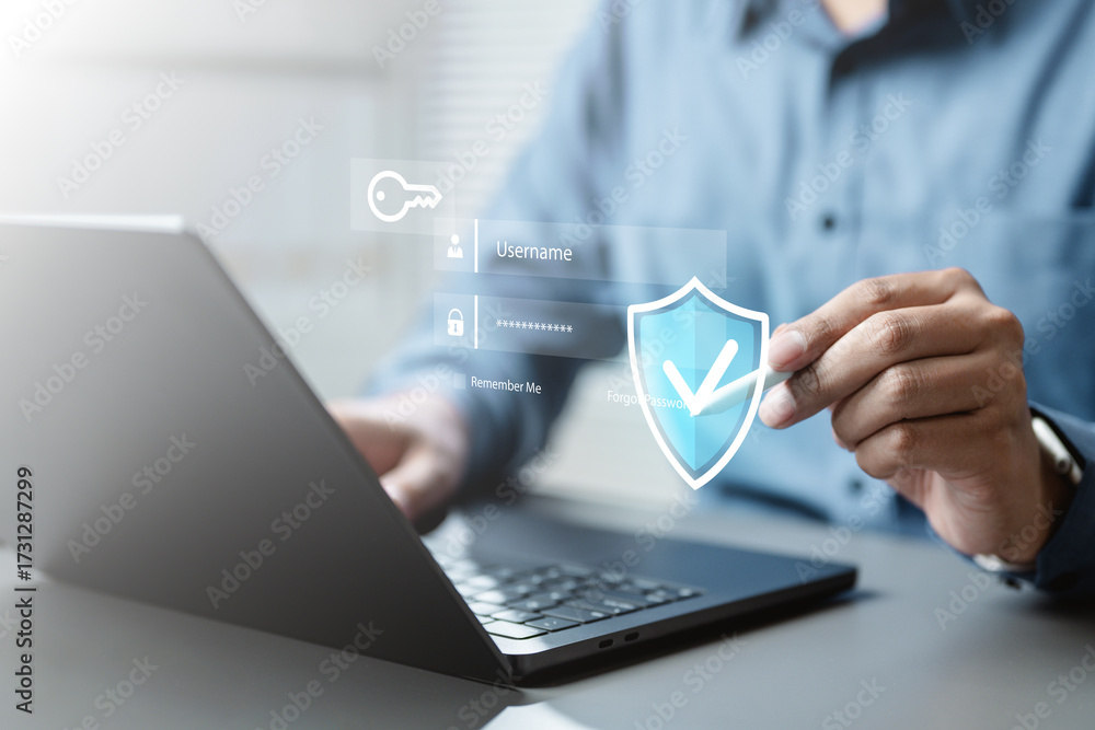 cyber security and Security password login online concept Hands typing ...