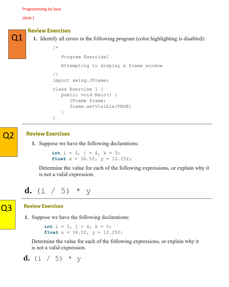Solved Programming by Java JAVA 1 Q1 Review Exercises 1. | Chegg.com