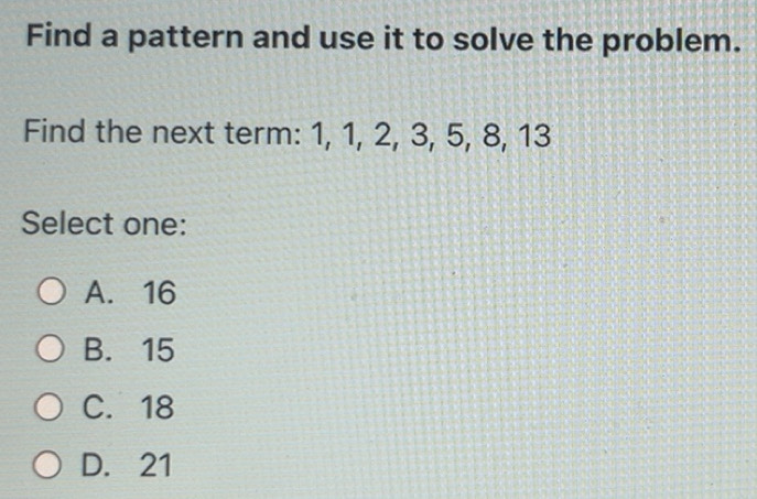 Solved: Find a pattern and use it to solve the problem. Find the next ...