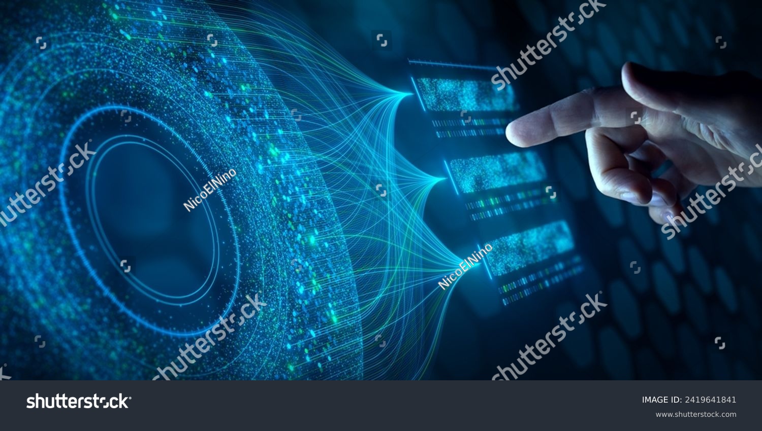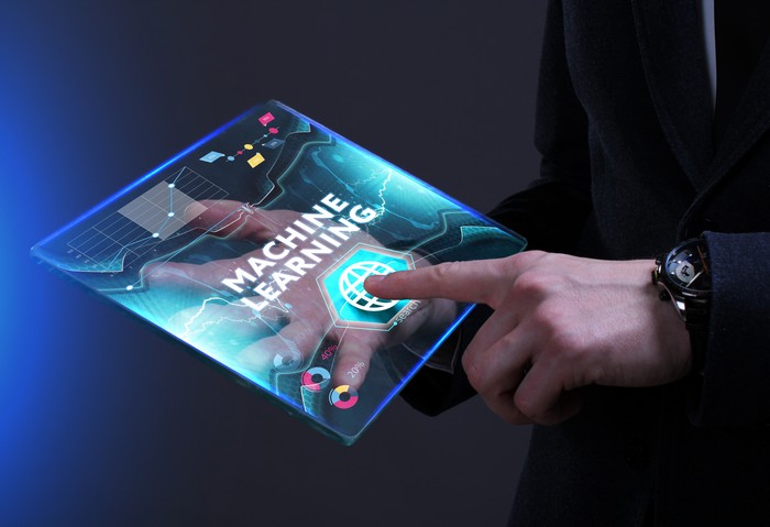 Big data analysis with AI technology. Person using machine learning and ...