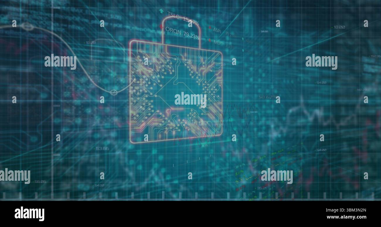 Floating padlock icon hovering over teal grid interface, showcasing ...